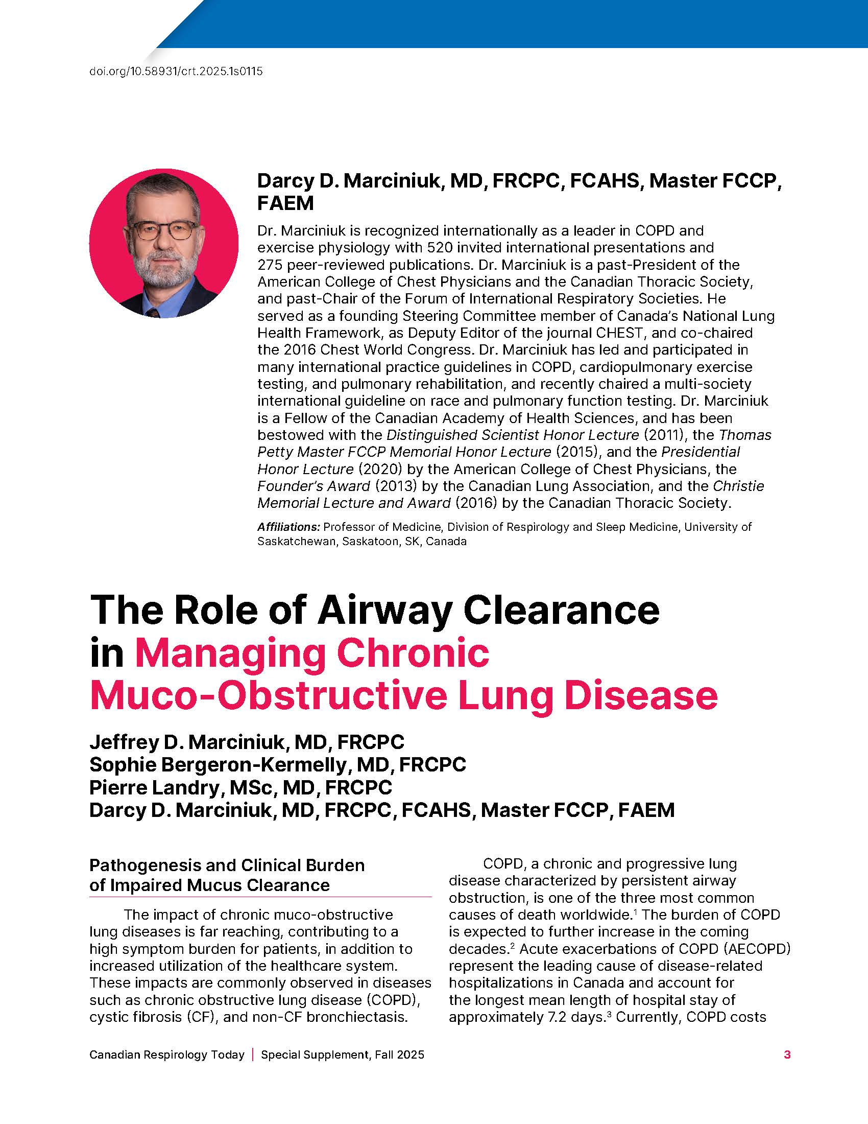 | Journal title Canadian Respirology Today. |